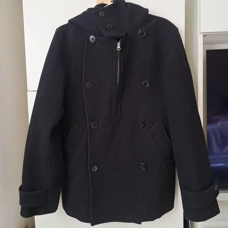 카반드 주카 더블 브레스트 후드 부착 울 코트