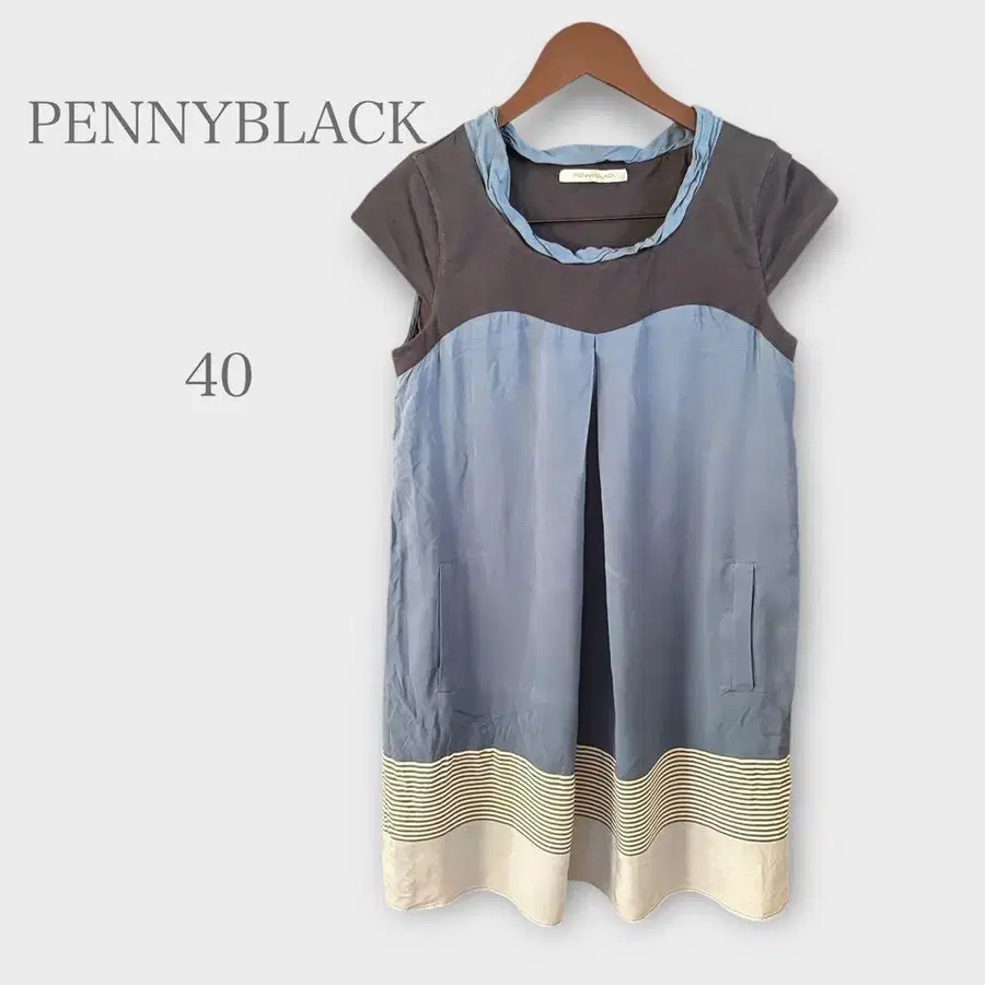 페니 블랙 배색 원피스 절개 디자인 반팔 M 사이즈 상당 고급