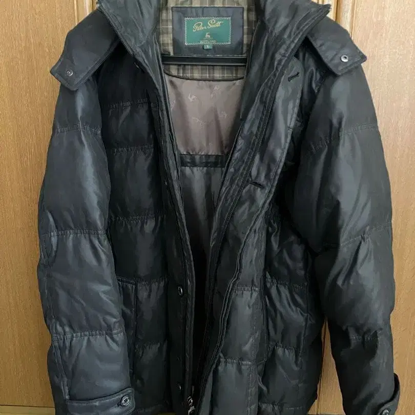 다운 자켓 블랙 컬러 남성용 후드 부착 / 새상품급