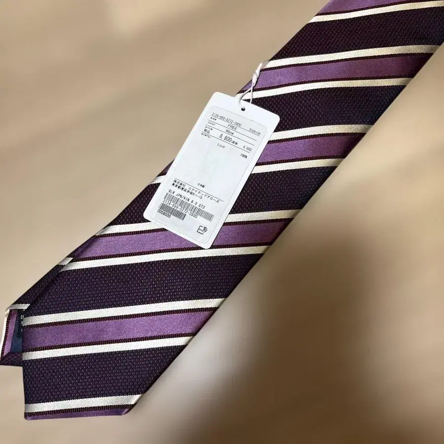 8,800엔 실크 보라색과 화이트 스트라이프 넥타이