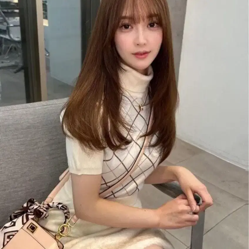 다리치 체크 무늬 터틀넥 미니 원피스