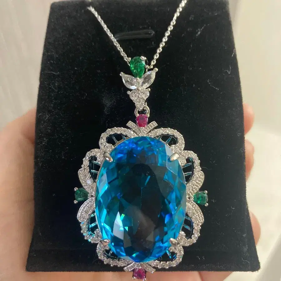 보석 목걸이 큰 장식적인 파란색 스톤의 목걸이 새상품