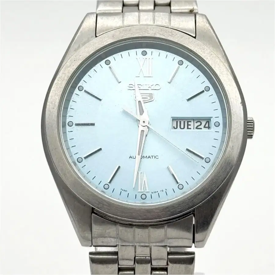 세이코 5 아이스 블루 손목시계 자동 와인딩 남성용 오토매틱