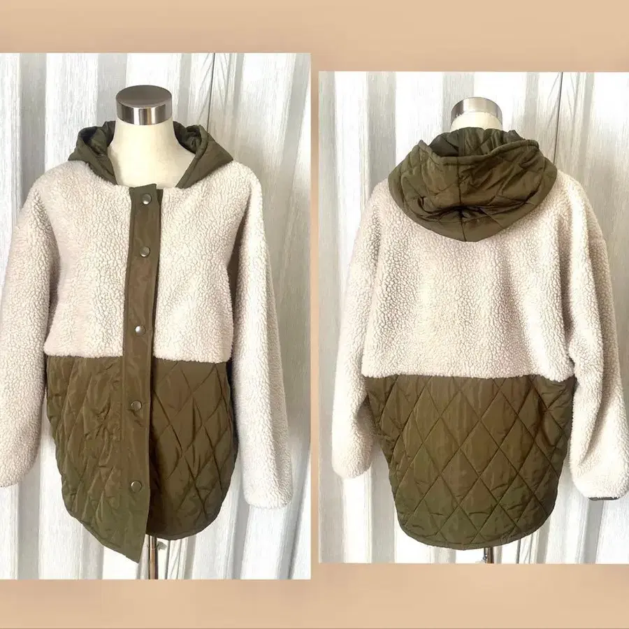 후드 부착 퀼팅 밀리터리 자켓 아우터 카키