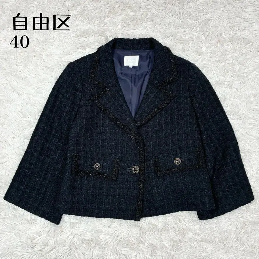 테일러드 자켓, 트위드, 숏 기장, 2개 버튼, 세레모니, 포멀, 전체 안감, 장식 버튼, 라메, 온워드 카시야마, 출퇴근 통학