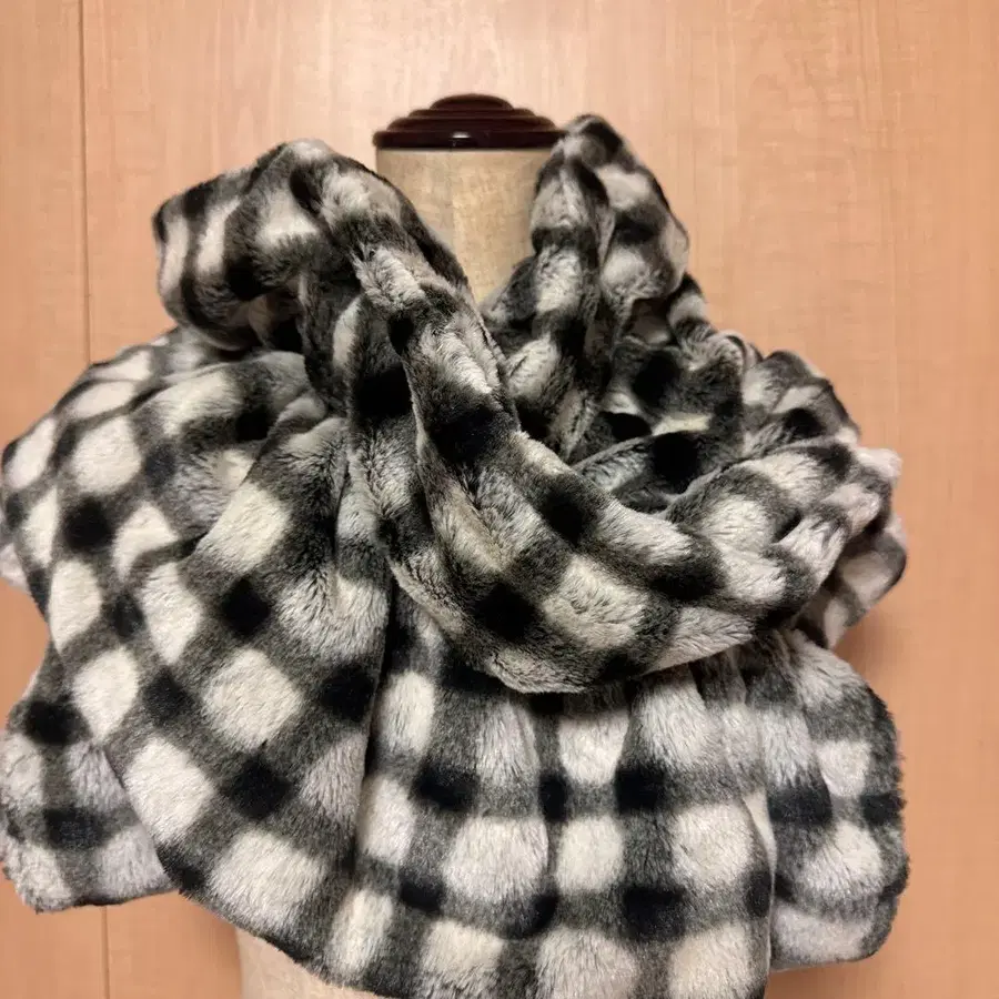 Tif & Tiffy 퍼 소재 블랙 화이트 체크 무늬 머플러