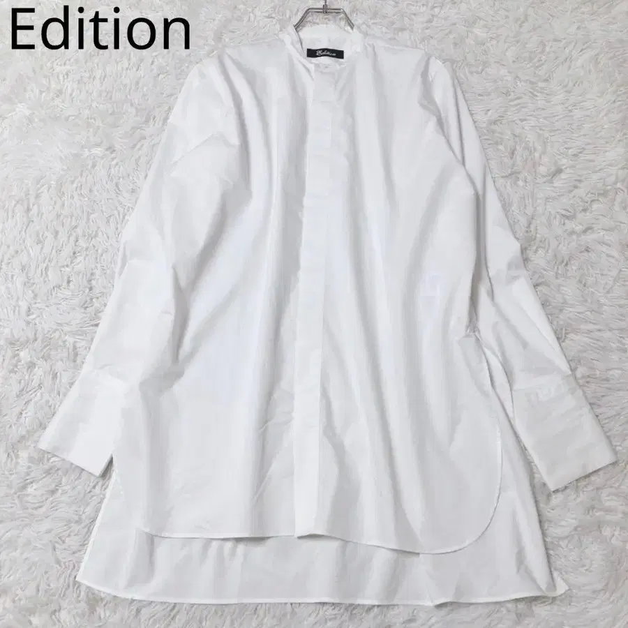 에디션 긴팔 셔츠 화이트 면 혼방 일본제 사이드 슬릿 길어진 기장 출퇴근