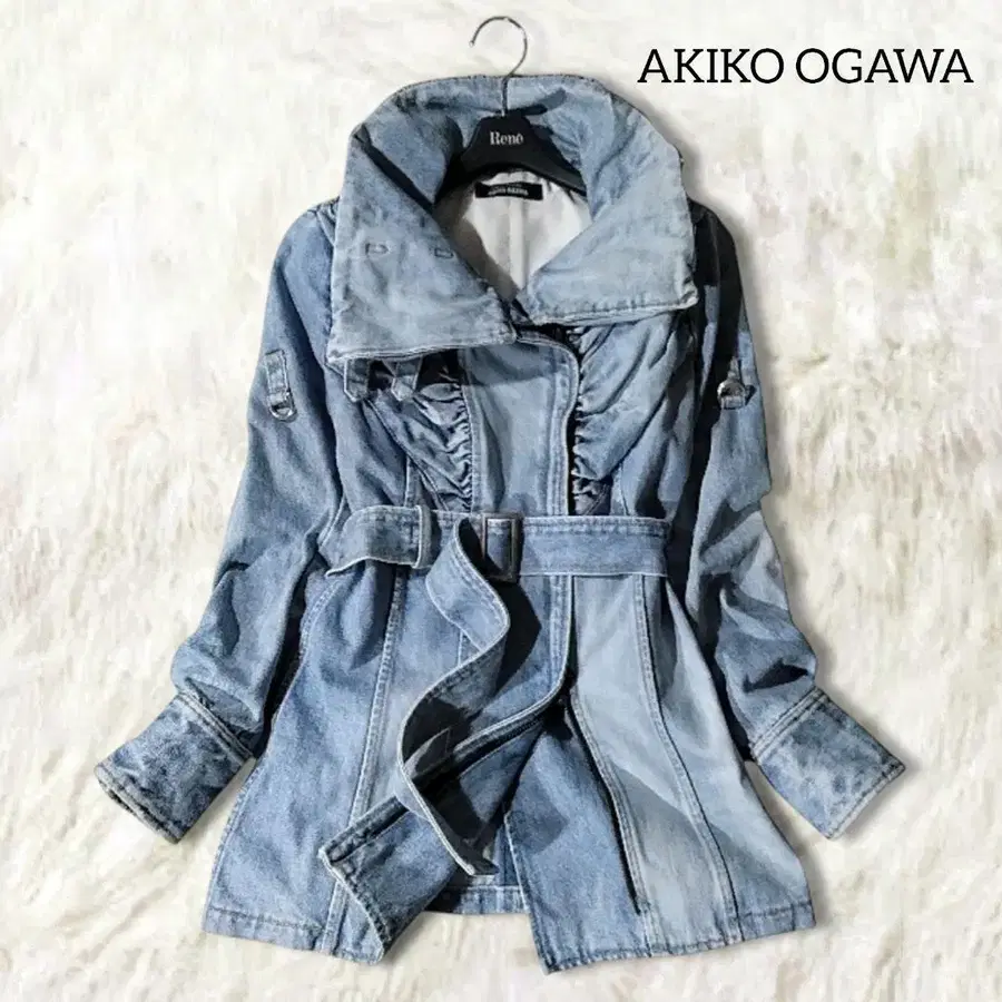 아키코 오가와 데님 자켓 블루종 일본제 셔링 벨트 개성적