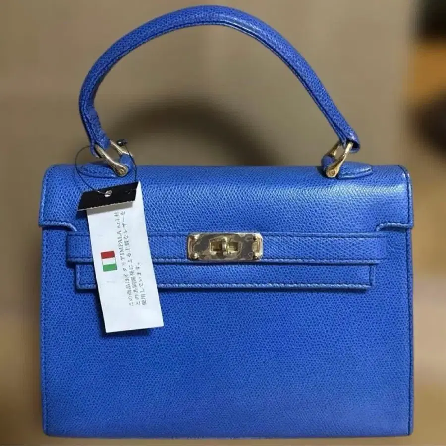 새상품 이탈리아제 가죽 핸드백 버클 금장 장식 벨트 블루 졸업 입학