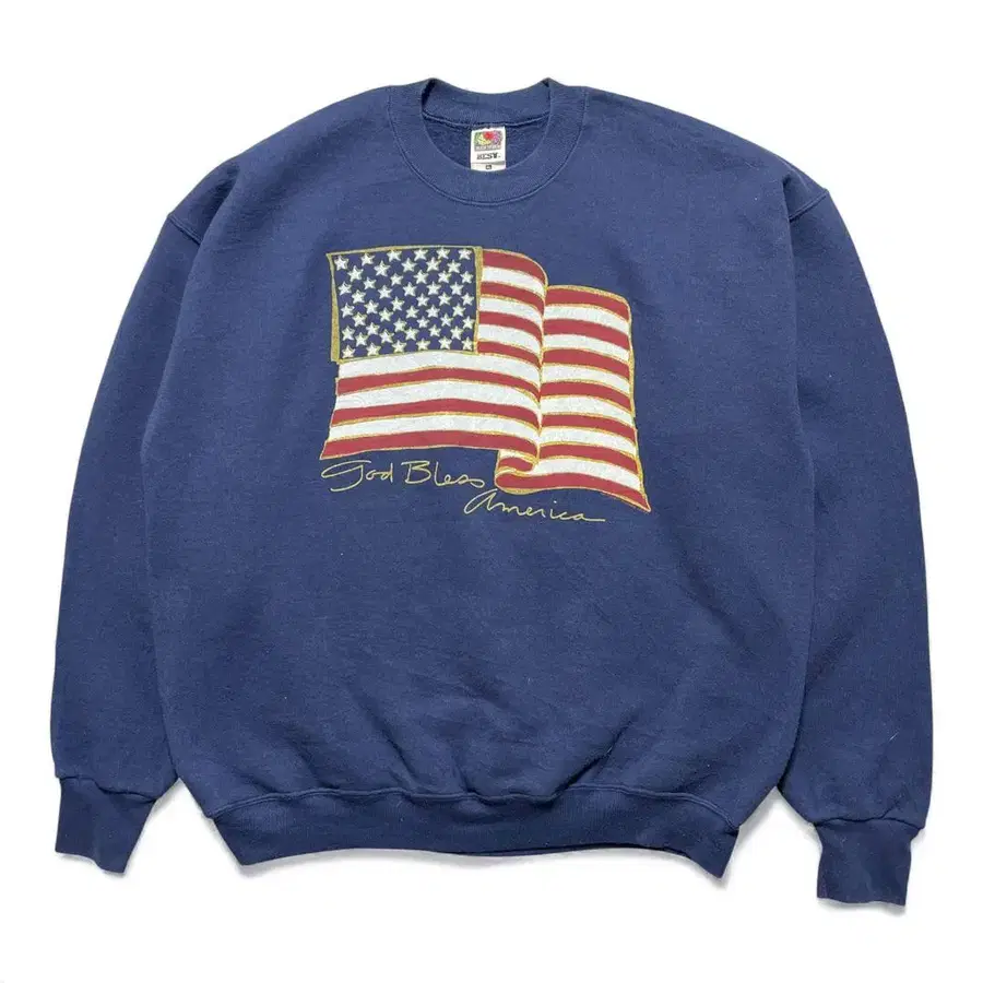 USA 구제 프룻 오브 더 룸 성조기 크루넥 맨투맨 트레이닝복 프린트 네이비 남성용 XL BD3131