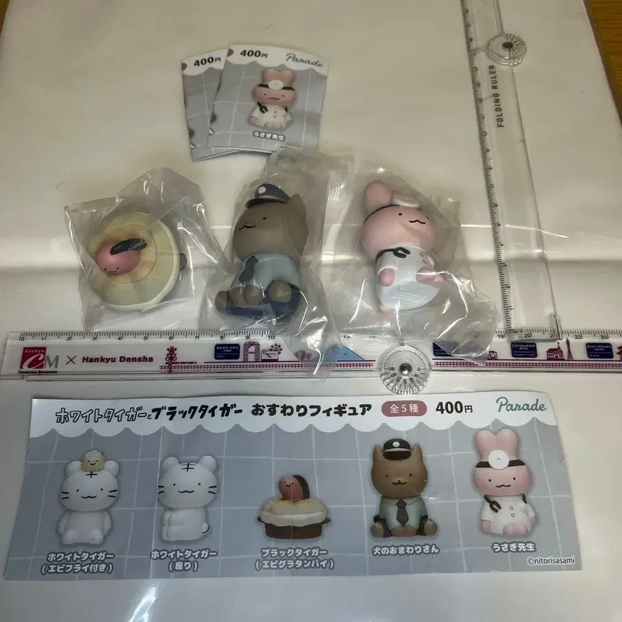 가챠 화이트 타이거와 블랙 타이거 앉아 피규어 3종 세트