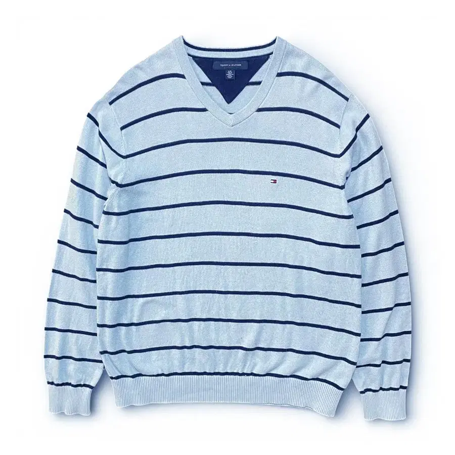 구제 의류 타미힐피거 코튼 니트 V넥 보더 무늬 스웨터