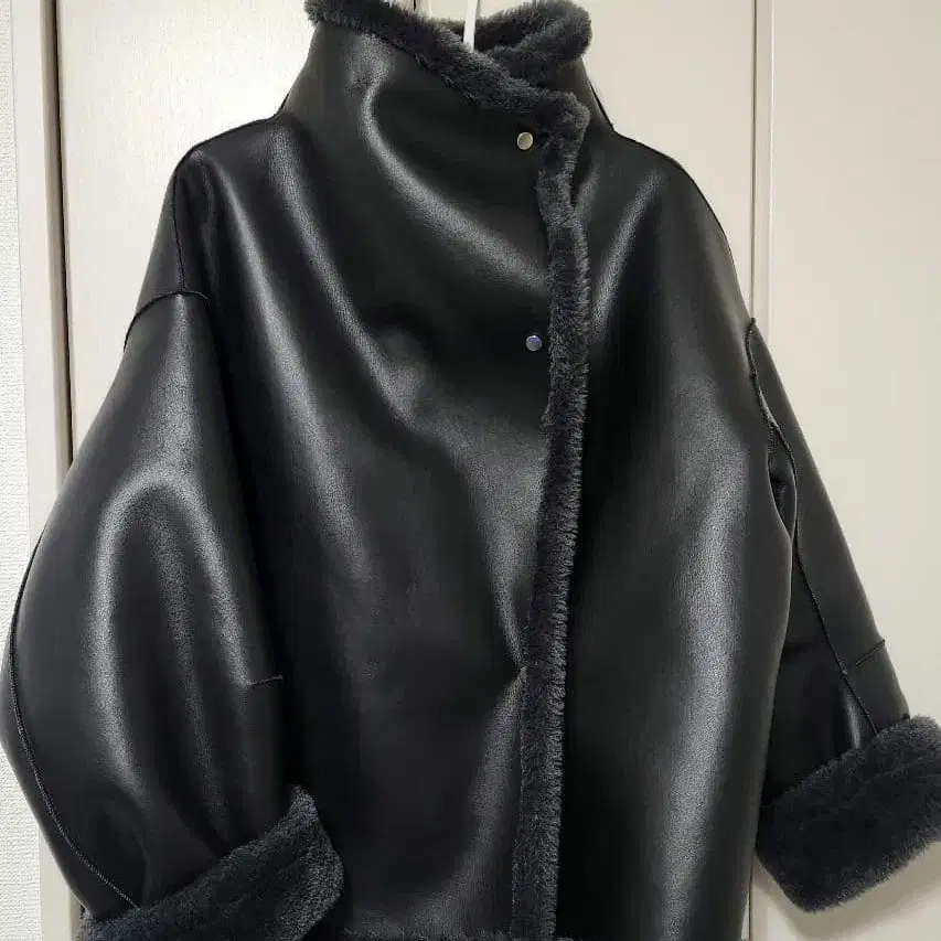 라그나문 페이크 무스탕 스탠드 카라 코트 블랙