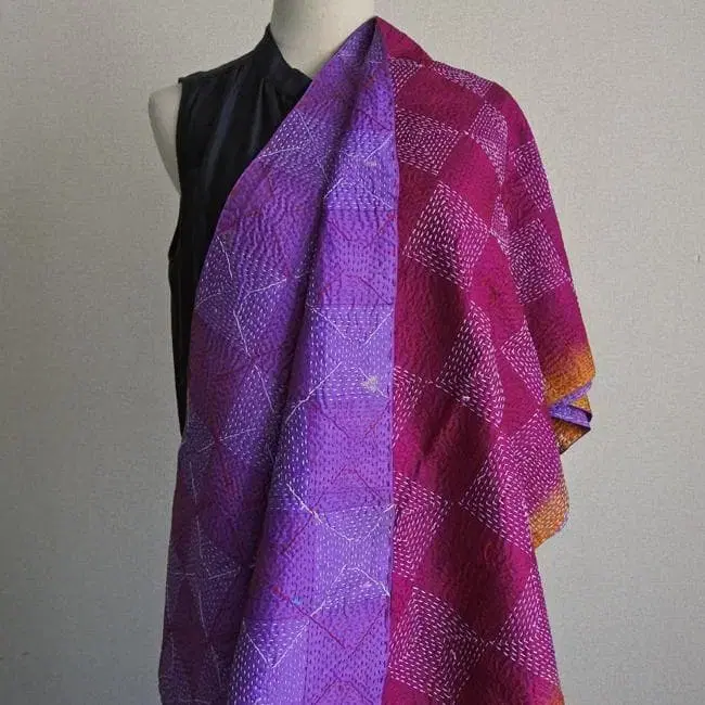 ■ No.44 칸타 스톨 빈티지 실크 서클 디자인 칸타 스톨은 다른 것도 있습니다 ♩ #khushboo_칸타스톨 빈티지 실크 원단에 서클 디자인 자수를 놓은 스톨입니다. 빈티지 특유의 독특한 색감과 따뜻함이 느껴지는 자수의 고급스러운 조합. 리버서블이라 기분에 따라 다르게 사용할 수 있는 뛰어난 제품입니다. 모양 잡기가 쉽고, 주름도 신경 쓰이지 않아 휴대하기 편리합니다. 실크는 겨울에는 따뜻하고, 여름에는 양산 대용으로도 사용할 수 있는 매끄러운 질감입니다. 목에 감기 좋은 적당한 사이즈감입니다. ♦ 베이스 컬러: 적자색 x 스미레색 ♦ 소재: 실크 빈티지 원단 (빈티지 사리) ♦ 사이즈: (약) 폭 43cm x 길이 2m ※ 정확한 직사각형이 아니므로 사이즈는 참고용으로 생각해주세요. ■ 상품에 대한 주의 사항 실 색상에 따라 전체적인 색감의 인상이 다르게 보일 수 있습니다. 예를 들어, 그린 색상의 원단에 파란색 실로 자수가 놓인 경우, 멀리서 보면 청록색으로 보일 수 있습니다. 실제 색감은 가까이서 확인했을 때와 인상이 다를 수 있습니다. 빈티지 원단을 재활용했기 때문에, 원단의 뒤틀림이나 이음새, 작은 얼룩, 올풀림, 데미지, 또는 수선 흔적이 보일 수 있습니다. 자수 실의 튀어나옴, 올풀림, 원단에 밑그림 자국이 남을 수 있습니다. 마감 처리는 일본 제품과 같은 완벽함은 없습니다. 미리 양해 부탁드립니다. 자수 마감은 장인의 기술에 따라 다릅니다. 앞뒤 구분이 안 될 정도로 섬세한 것도 있고, 앞뒤의 인상이 다른 것도 있습니다. 원단의 질감이나 두께는 상품마다 다릅니다. 여러 개 구매 시에는 개체 차이가 있음을 이해해주세요. ■ 세탁에 대하여 손세탁 또는 세탁기의 가장 약한 모드로 부드럽게 세탁해주세요. 실크용 또는 울샴푸용 세제를 사용하시는 것을 추천합니다. 제품에 따라 약간의 색빠짐이 보일 수 있으므로, 다른 세탁물과는 분리하여 세탁해주세요.