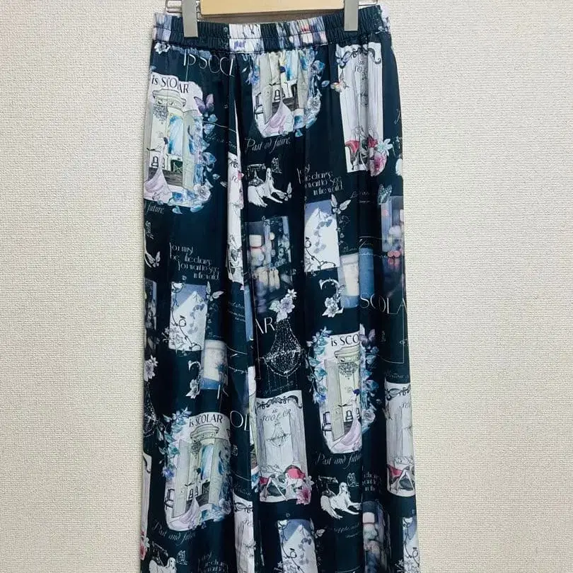 이즈스칼라 플레어 롱 스커트 꽃무늬 아트 프린트 블랙