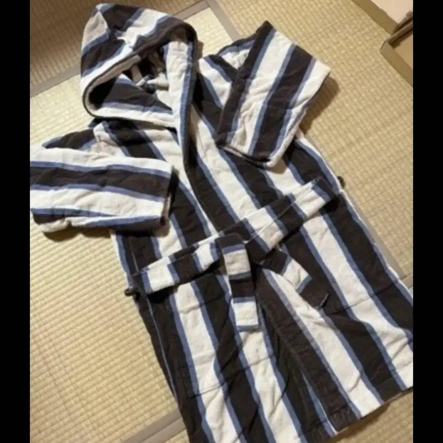 TEKLA 후드 부착 스트라이프 목욕 가운
