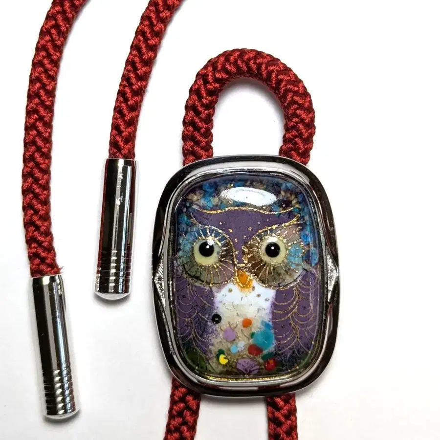 nlt48 새상품 루프 타이/볼로 타이 실버 x 칠보 올빼미 실크 레드