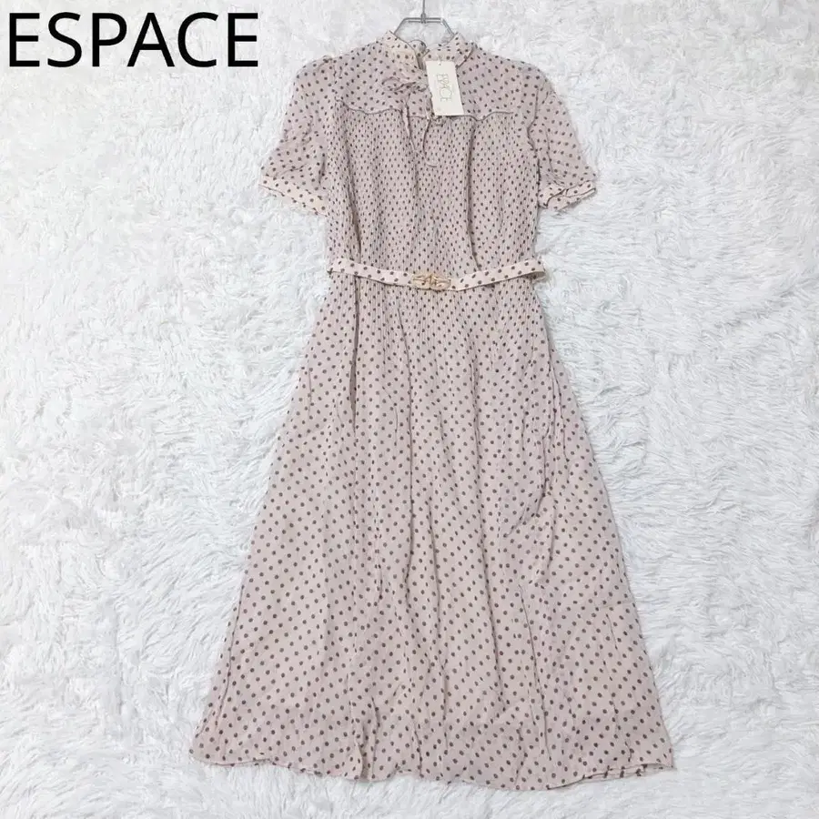 에스파스 원피스 도트 무늬 벨트 포함 롱 기장 리본 레트로 핑크 M