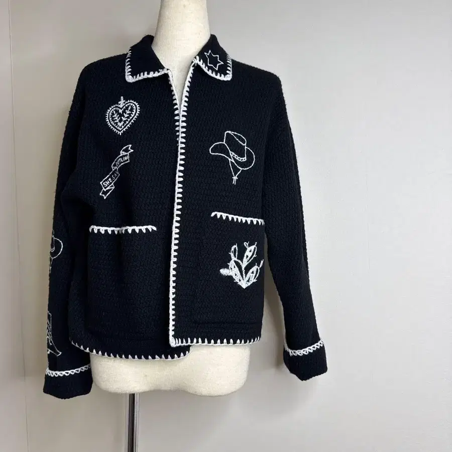 새상품 이번 시즌 저널 스탠다드 자수 블랙 긴팔 가디건