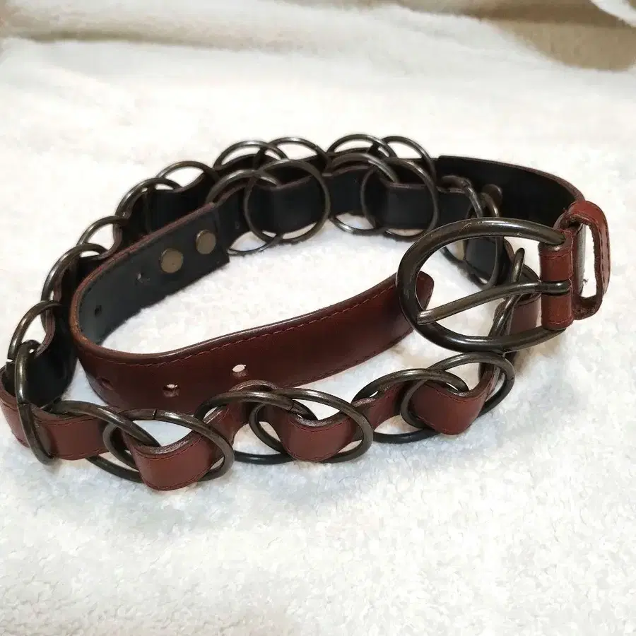 90s 가죽 체인 디자인 벨트 브라운 빈티지