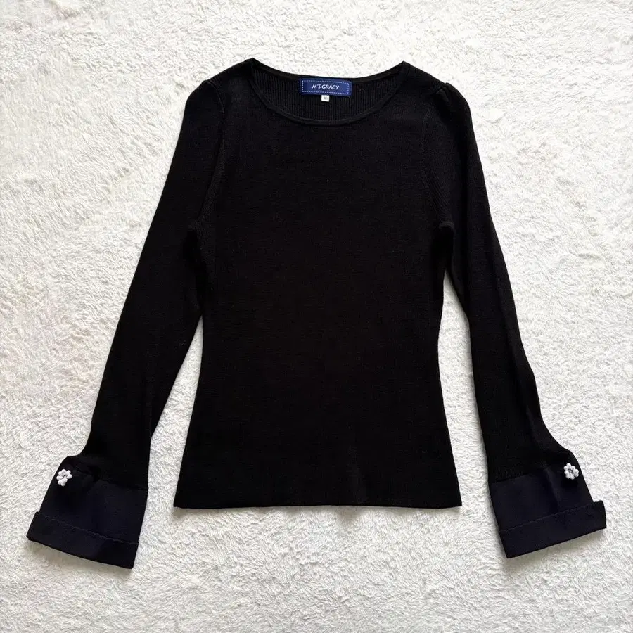 엠즈 그레이시 펄 비쥬 커프스 리브 니트 라운드넥 블랙