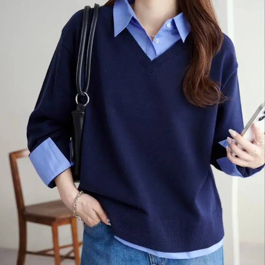 DISCOAT 셔츠 레이어드 풀오버 네이비 F