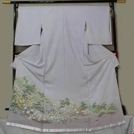 순수 실크 이로도메소데 미재단 일본 실크 초화 무늬 극연한 베이지 계열