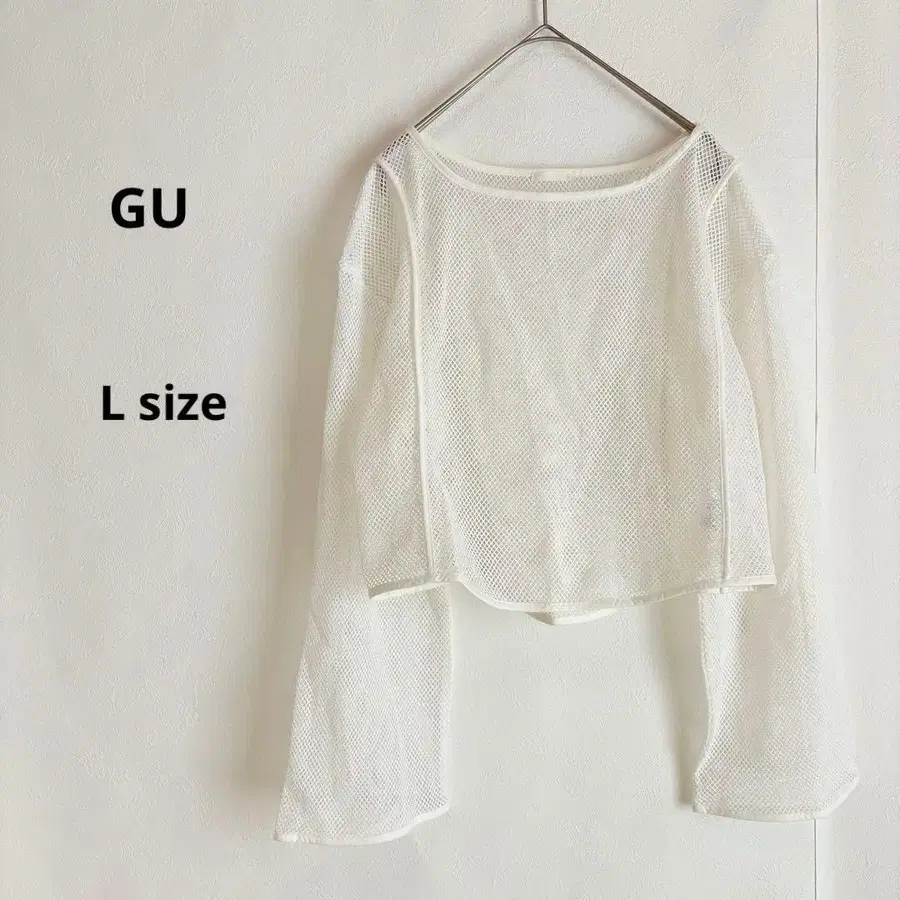 GU 지유 메쉬 상의 L 화이트 긴팔 숏 기장 캐주얼