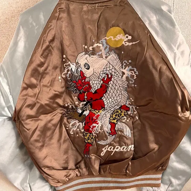 [ 유니크한 디자인 ] 이 스카잔은 일본의 전통적인 자수 디자인이 적용되어 시선을 사로잡는 비주얼이 특징입니다. 특히, 빨간색 캐릭터와 물고기 모티브가 인상적이며 개성 있는 스타일을 연출합니다. 여성에게 인기 있는 브라운 색상. 외국 기념품으로 구매하시는 분들이 많습니다. [ 고품질 소재 ] 새틴 원단을 사용하여 부드러운 촉감과 광택감이 있습니다. 내구성도 높아 오래도록 애용할 수 있는 아이템입니다. [ 캐주얼 스타일 ] 캐주얼 코디네이트에 잘 어울리며, 데님이나 치노 팬츠와 함께 평소부터 특별한 날까지 폭넓게 활용할 수 있습니다. - 디자인: 자수 디자인이 적용된 스카잔 - 소재: 새틴 원단 - 색상: 브라운과 실버 블루의 콤비네이션 - 제조국: 일본제 - 스타일: 캐주얼 자켓 기장 64cm, 가슴 너비 56cm, 옷깃부터 소매 길이 77cm 개인 측정으로 인한 오차는 양해 부탁드립니다. 보관품이므로 접힌 주름이 있습니다. 겉감 나일론 100% 안감 폴리에스테르 100% 충전솜 폴리에스테르 100% 저리 아크릴 100% 신장 170cm 정도인 분에게 적합할 것 같습니다. ⭐️ 흠집, 얼룩은 확인했지만 개인 소장 보관품이므로 발견하지 못한 부분이 있을 수 있습니다. 양해 부탁드립니다. ⭐️ 다른 사이트에도 판매 중이므로 구매 전 댓글을 남겨주시면 감사하겠습니다.