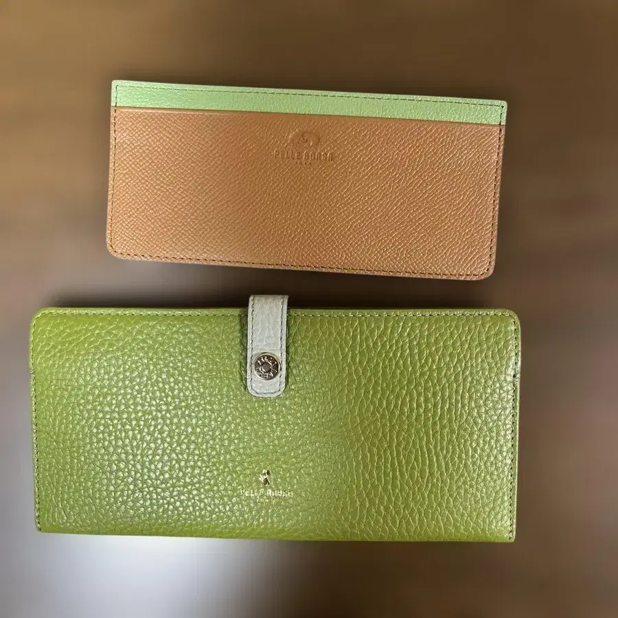 가죽 장지갑 그린 컬러 그레이