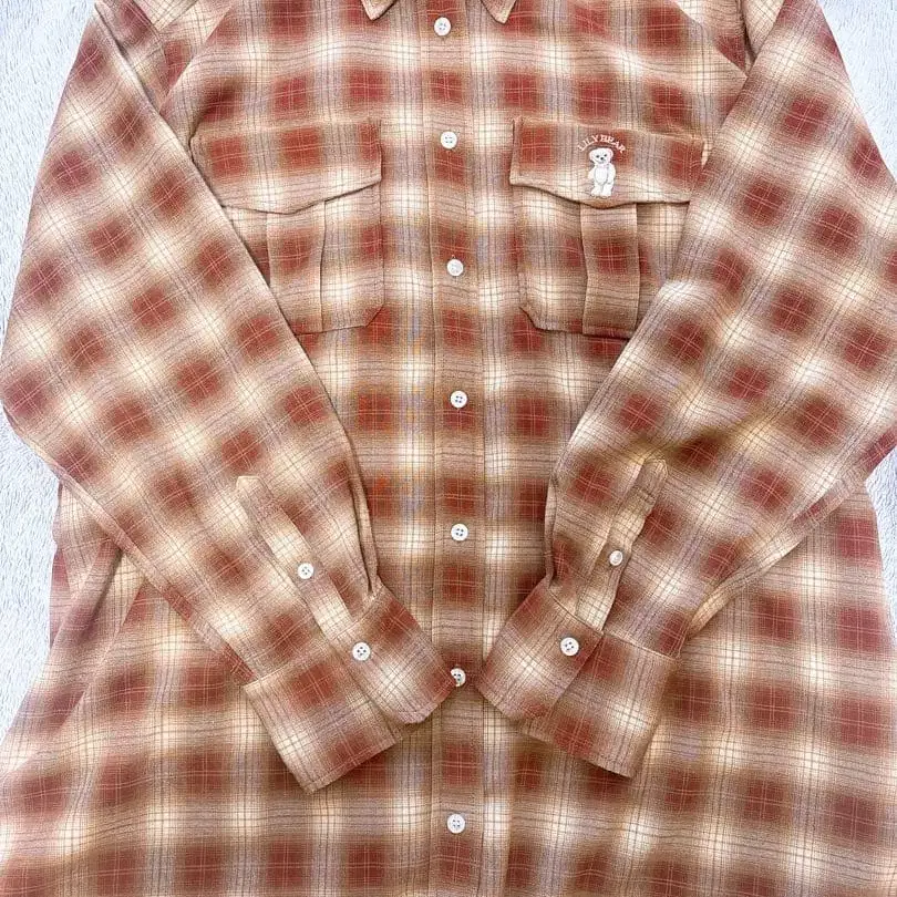 새상품급 릴리 브라운 리본 타이 달린 릴리 베어 체크 셔츠