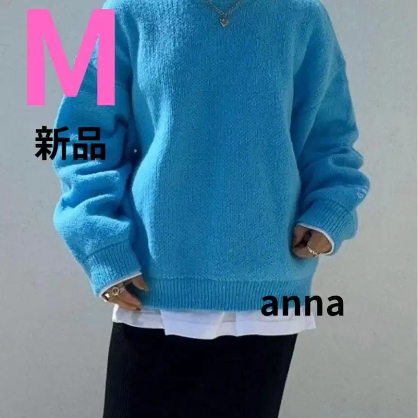 [새상품] 시마무라 ANNA 컬러 니트 풀오버 M 사이즈 중청 블루