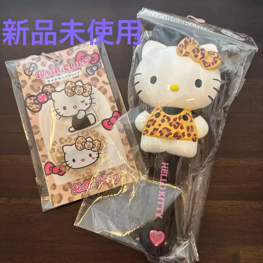 미사용 새상품 헬로키티 헤어 브러쉬 & 라메키라 헤어 클립 레오파드 무늬