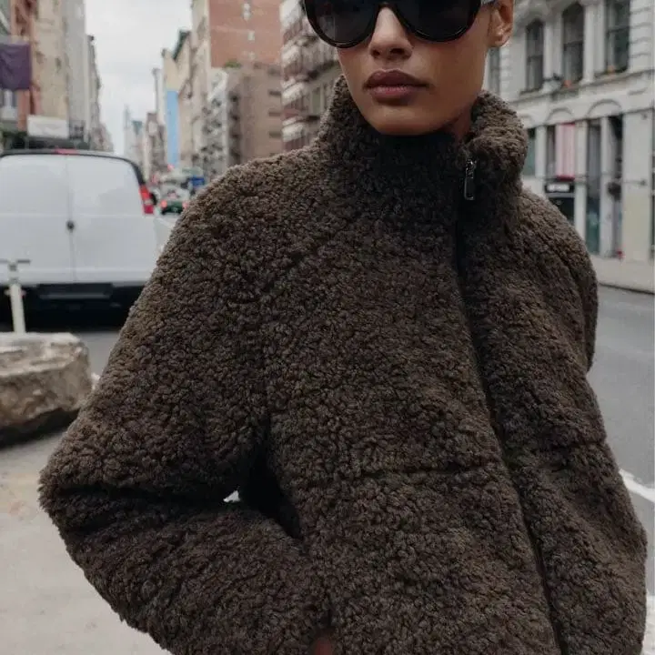 새상품 ZARA 보아털 보온 아노락 M 아우터 브라운