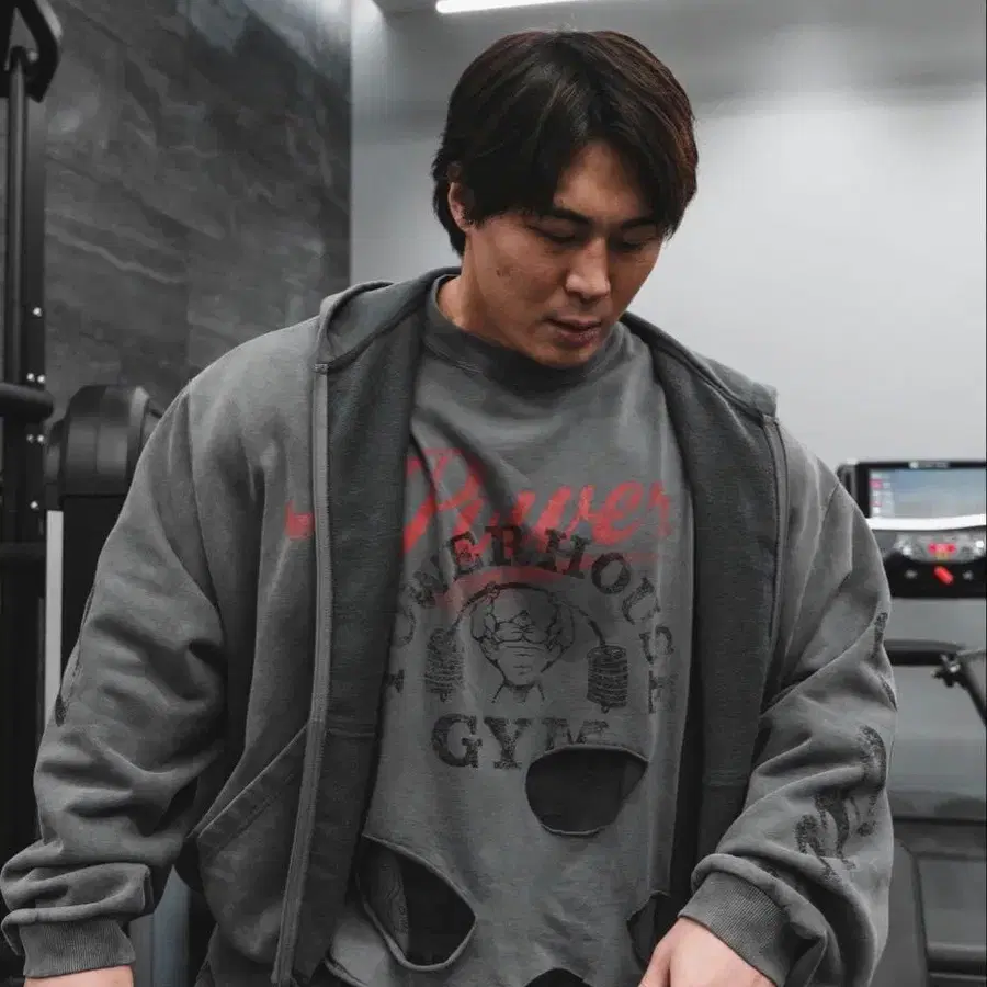 Powerhouse Gym 데미지 가공 티셔츠 그레이 M 사이즈