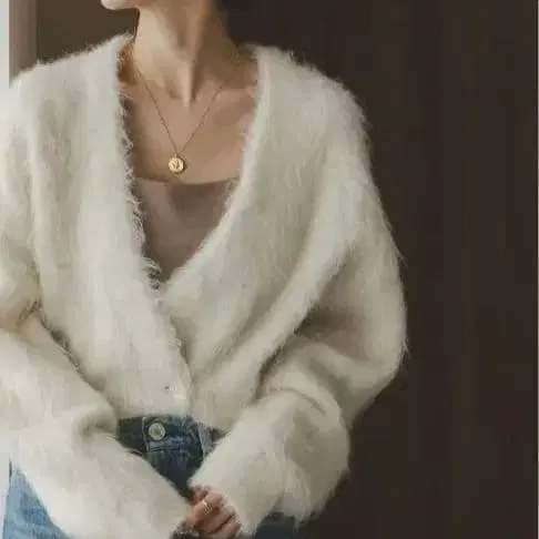 택 포함 새상품 noble 화이트 퍼풍 가디건