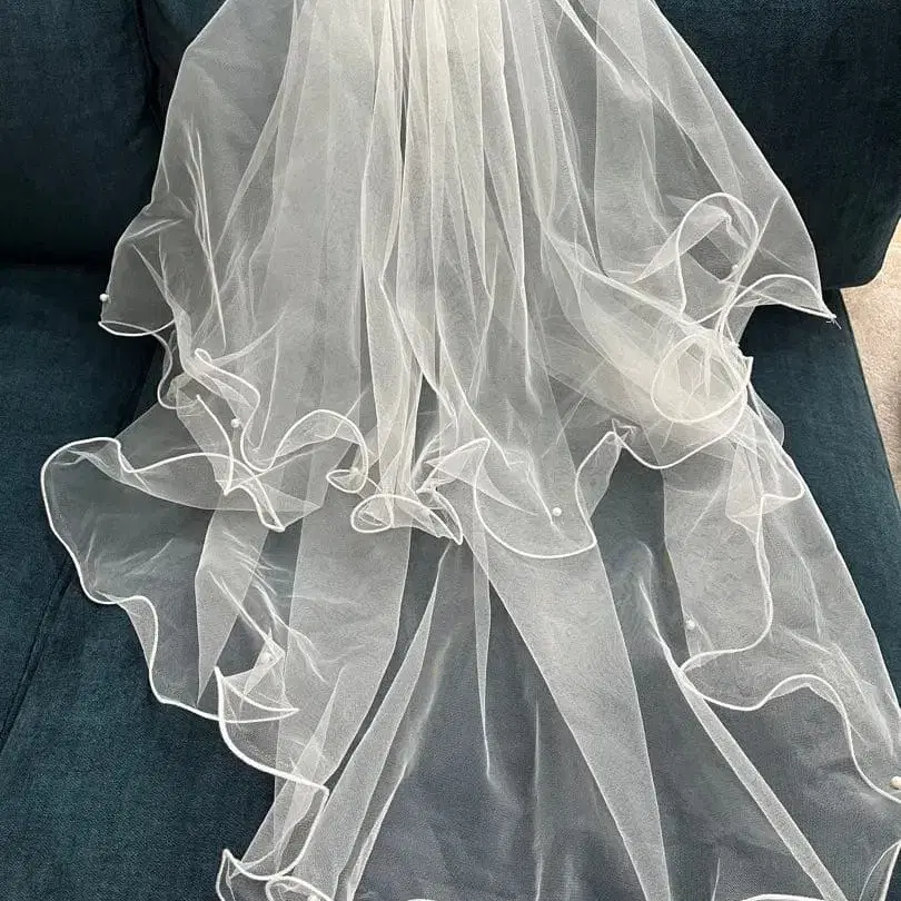 웨딩 베일과 새틴 브라이덜 그로브 세트