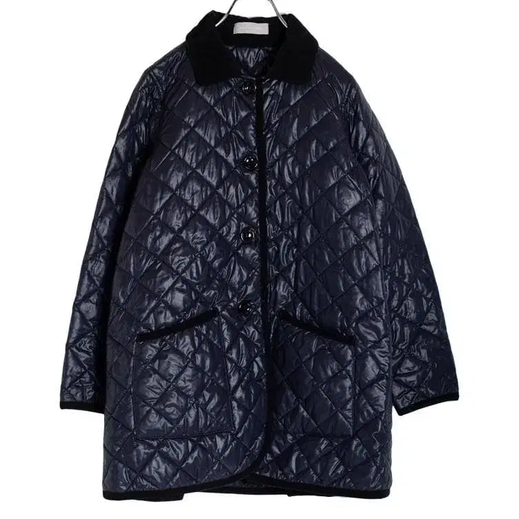 Audrey and John Wad 퀼팅 A라인 코트 네이비