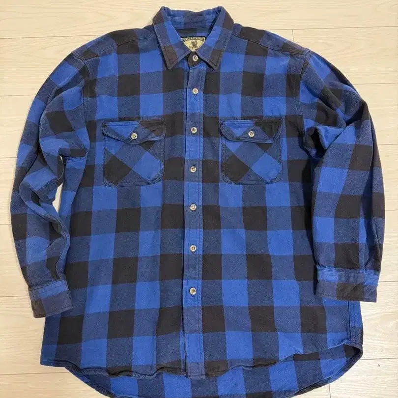 FIELD & STREAM 긴팔 플란넬 셔츠 XL 파랑 검정 체크
