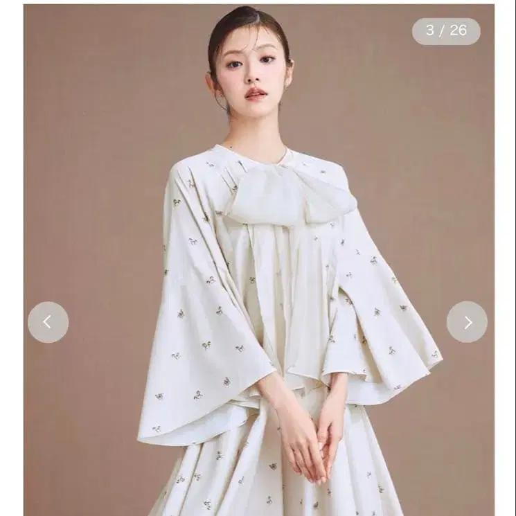 신체 라인을 드러내지 않는 사이즈로, 스트레스 프리한 착용감을 주면서도 깔끔하게 입을 수 있는 디자인입니다. 부드러운 조젯 소재를 사용하여 움직일 때마다 우아한 실루엣을 연출합니다.