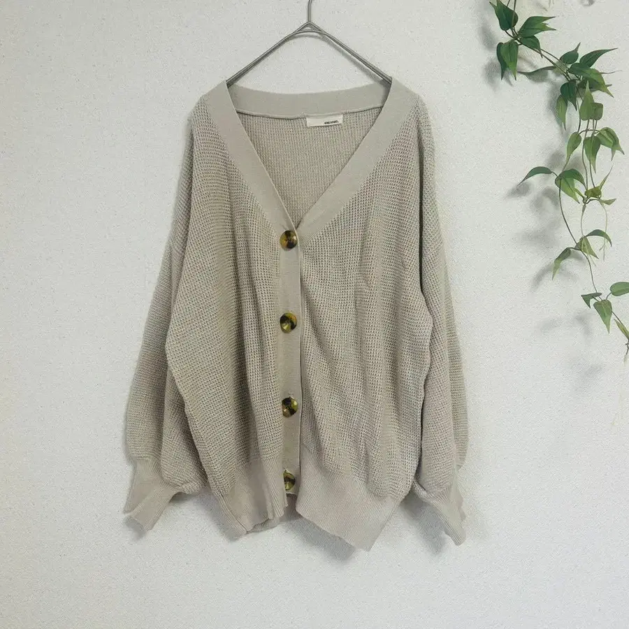 [ 아프리카타로 ] 베이지 니트 가디건 벌룬 슬리브 오버 사이즈