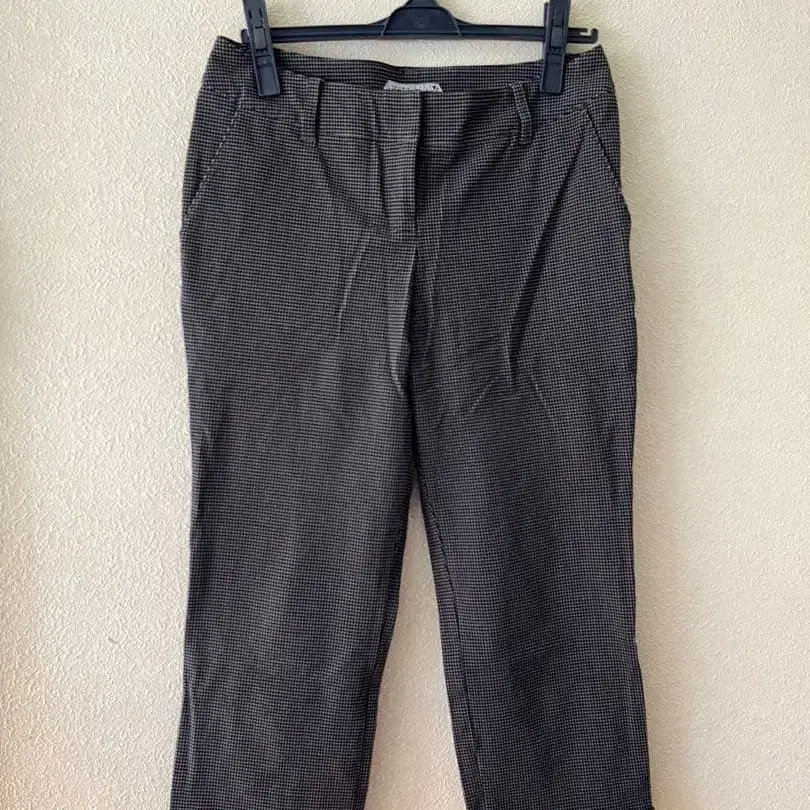 MARLENEDAM ITALY 크롭 팬츠입니다. 하운드투스 패턴 그레이 신축성이 매우 좋아 편안하게 착용하실 수 있습니다. 사이즈 L 인심 59cm 허리 39cm 크롭 기장 몇 번 착용한 새상품급입니다.