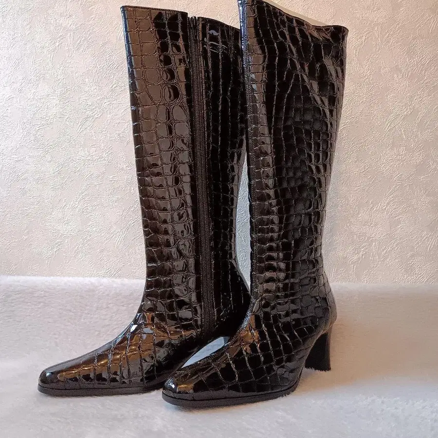 COCCO FIORE 블랙 크로커다일풍 롱 부츠
