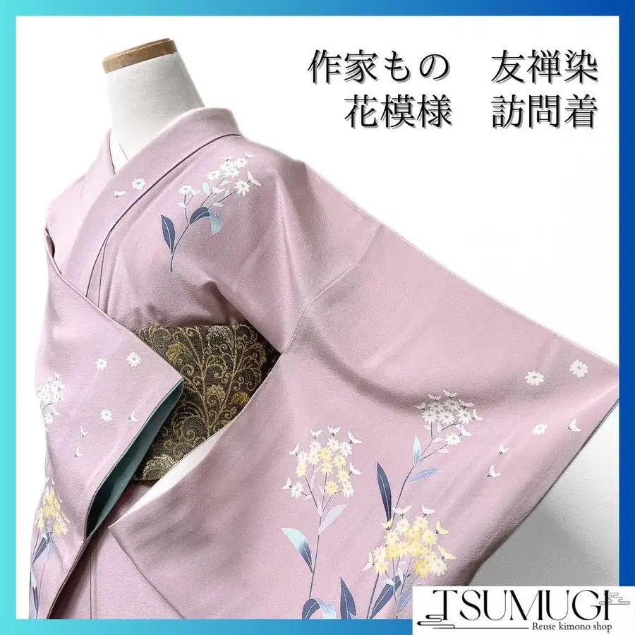 아베 케이세츠 작가 호몬기 유젠 꽃 무늬 기모노 035w