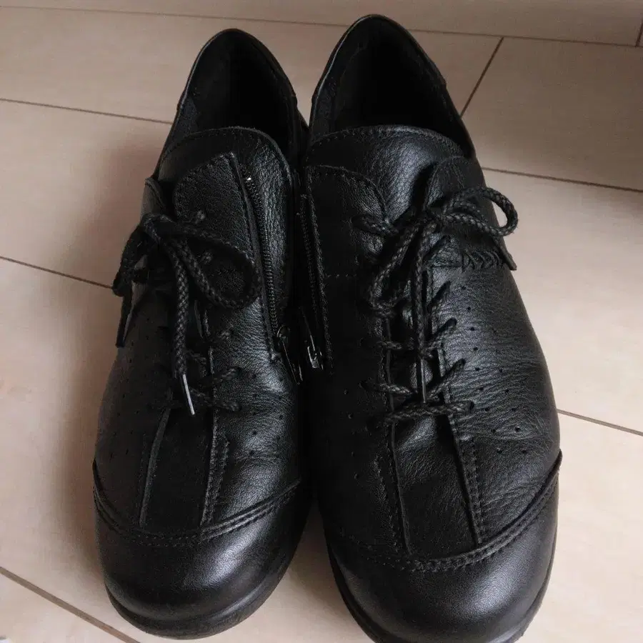 지퍼가 달린 블랙 가죽 캐주얼 스니커즈. - 색상: 블랙 - 소재: 가죽 - 디자인: 지퍼 - 스타일: 캐주얼 - 타입: 스니커즈 워킹화로도 사용할 수 있습니다. 사이즈가 맞지 않아 판매합니다. 스티치가 귀여운 디자인입니다. 얇아 보이지만 4E로 넉넉합니다. 매우 착용감이 좋은 신발입니다. 소독 완료 방문해 주셔서 감사합니다.