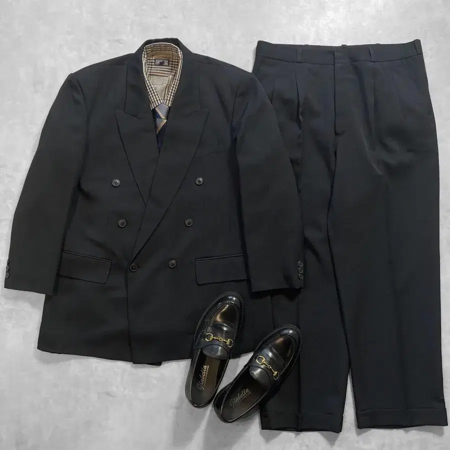 • 90s 빈티지 더블 수트 셋업 성인식 블랙 L