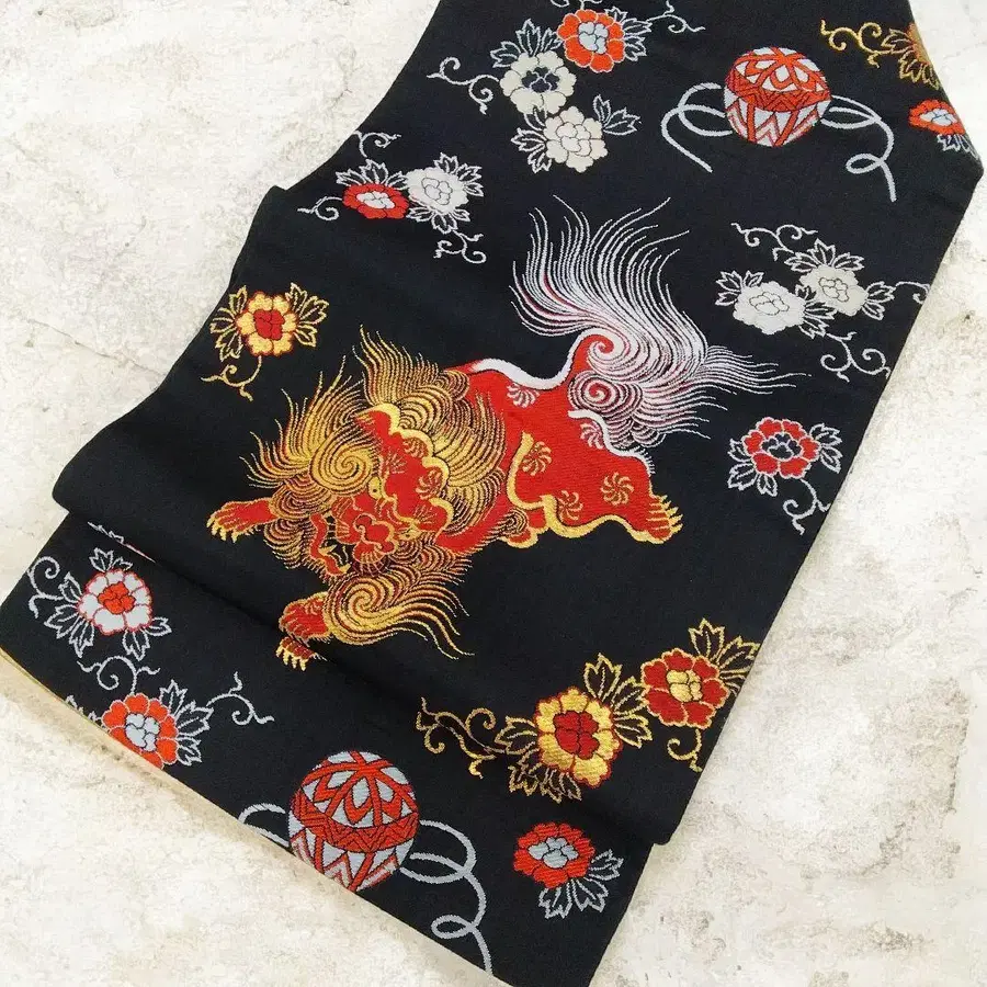 앤티크 당사자 모란 공 금실 나고야 오비 블랙 #1491