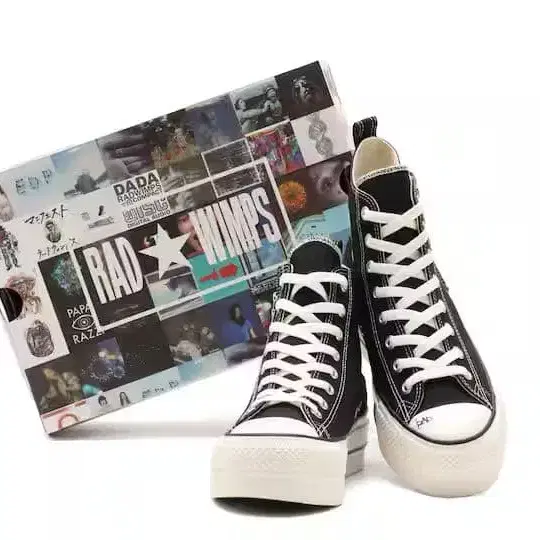 방문해 주셔서 감사합니다. *새상품 미사용 미개봉 *무언 즉시 구매 OK *가격 인하 불가합니다. ◆ 제품 사양 ◆ [RADWIMPS] 메이저 데뷔 20주년 기념 [atmos] x [RADWIMPS] x [CONVERSE] 트리플 콜라보레이션 모델 브랜드: CONVERSE(컨버스) 모델: ALL STAR LIFTED Z HI /AT RW 사이즈: 27.0cm 색상: 블랙 클래식한 룩과 쾌적한 착용감을 양립시킨 차세대 모델 [ALL STAR ® LIFTED]를 베이스로, [RADWIMPS]다운 특별한 디테일을 곳곳에 디자인했습니다. 사이드 지퍼 & 루프 사양의 뒤꿈치 끈으로 부츠 테이스트의 분위기를 연출합니다. 폭싱 테이프에는 [RADWIMPS]의 악곡 '우산 박자'의 가사를 레터링한 유일무이한 사양으로 어레인지했습니다. 왼쪽 발 토 부분에는 노다 요지로 씨 직필의 'RAD' 글자가 프린트되어 있으며, 위치도 고집스럽게 배치되어 있습니다. 또한, 클리어 아웃솔에는 역대 싱글, 앨범의 자켓 사진을 담아 아트 피스 같은 마감으로 제작했습니다. 좌우 비대칭의 힐 라벨에도 [RADWIMPS]의 글자를 채용했습니다. 부속된 박스도 특별 사양의 디자인으로, 역대 작품의 아트 워크를 흩뿌린 음악과 스트릿의 역사를 상징하는 의장으로 완성했습니다.