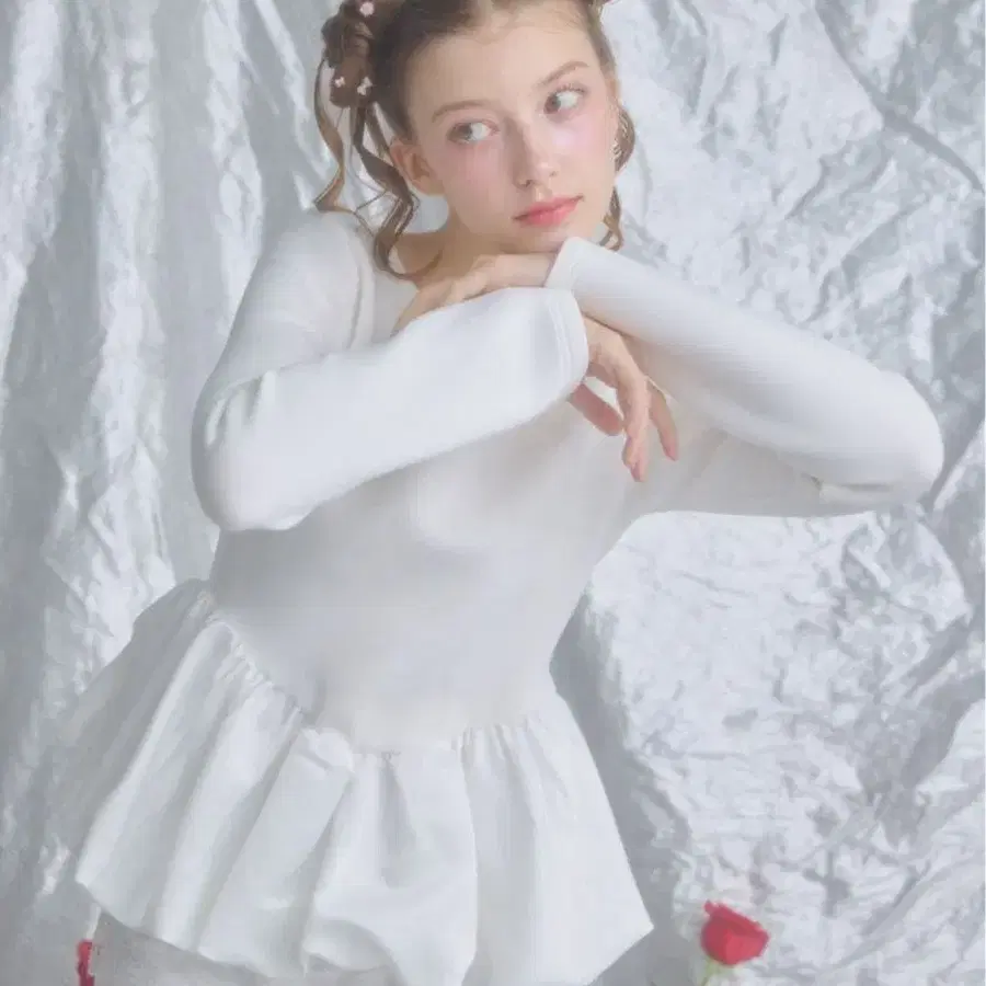 monepine 벌룬 레이어드 맨투맨 화이트 사이즈 2
