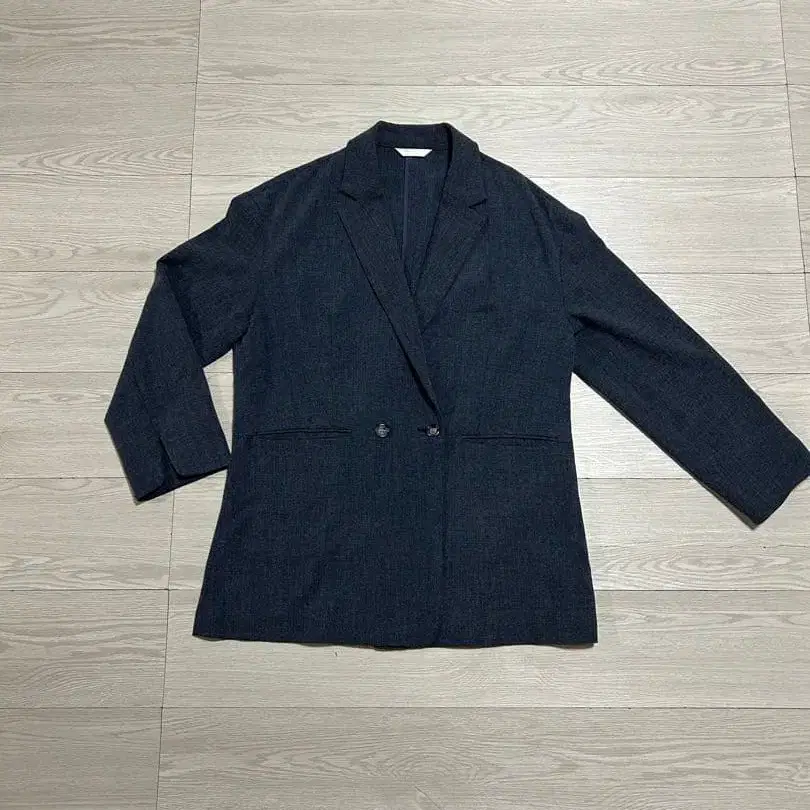 네이비 멜란지 더블 브레스트 테일러드 자켓